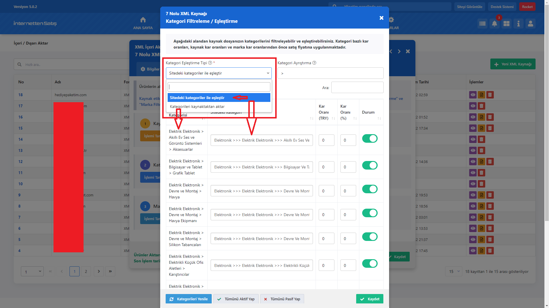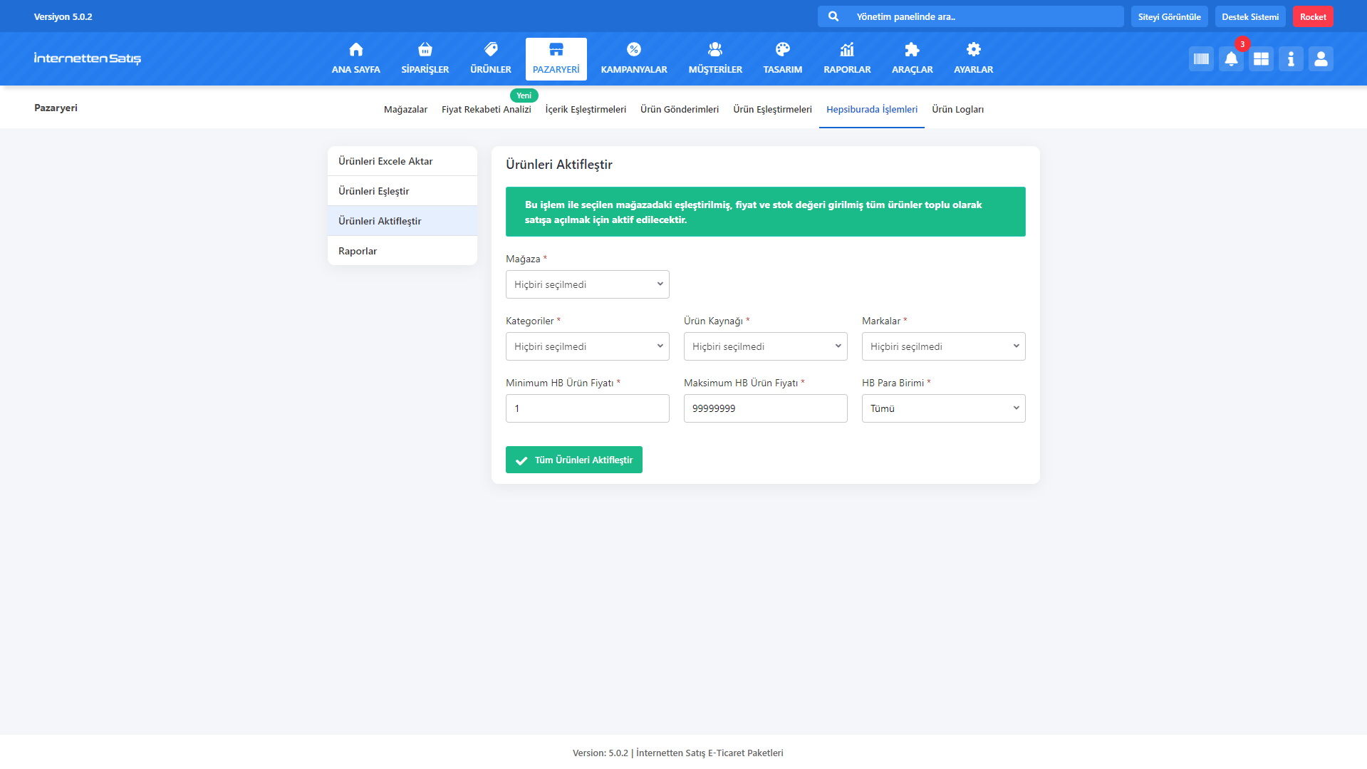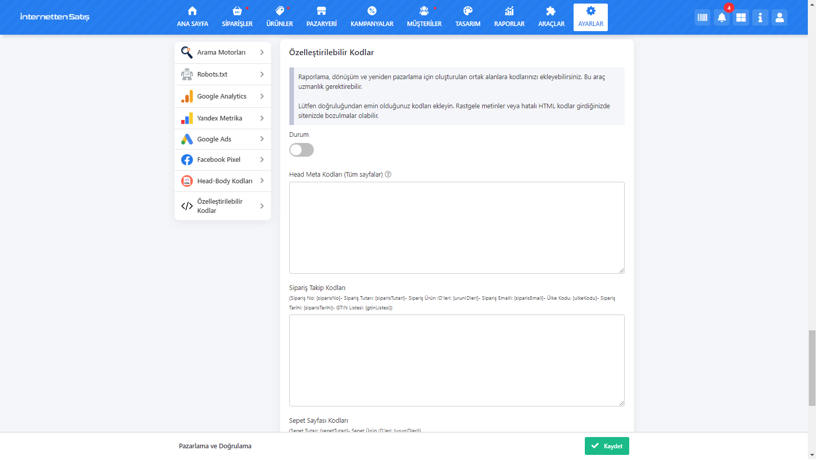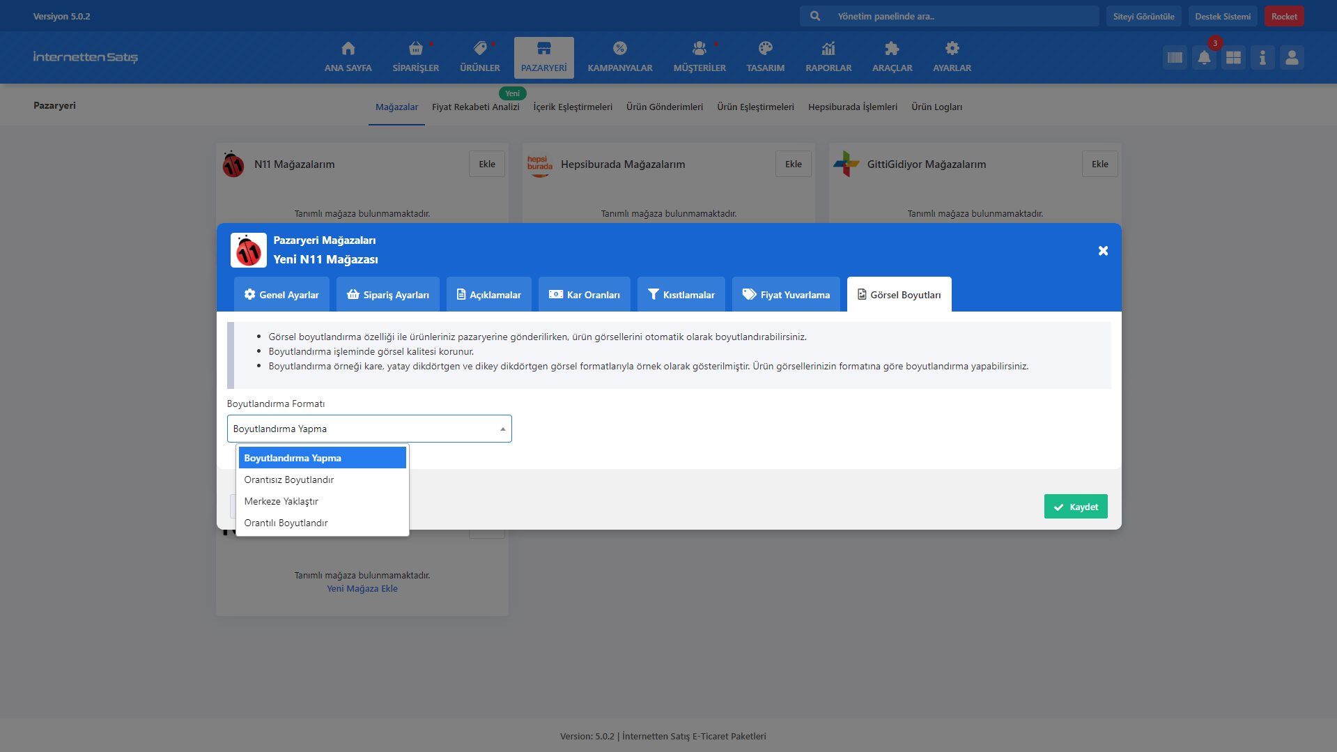 Hem sanal mağazanızı hem de pazar yerlerinin ekran görüntüleri altta sekme sekme listelenmiştir. Herhangi bir görüntünün üzerini tıklayıp, klavyenizin sağ ve sol ok tuşlarıyla diğer görüntülere hızlı bir şekilde geçebilirsiniz.